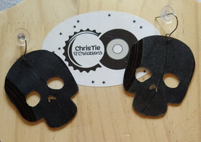 Voici une jolie paire de boucles d'oreilles en disque vinyle noir. Mes créations ont été découpé et poncé à la main dans des disques vinyles rayés ou voilés pour leur donner un second souffle donc il y a des imperfections dues au vécu du disque. Les crochets sont en acier inoxydable.